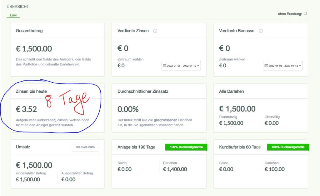 1. Platz: Bondora. Es sind im „Go & Grow“ nur 6,75 % Zinsen. Aber es ist so schön chillig, dass Geld erscheint am sichersten als bei den anderen Anbietern und es auch sehr kurzfristig verfügbar.