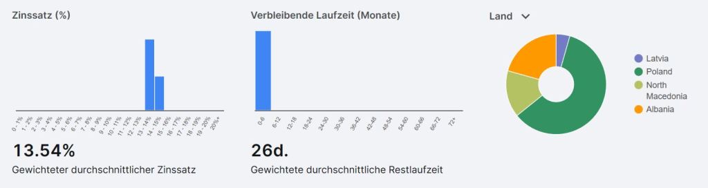 Die Automatisierung hat sehr gut mit meinen Einstellungen funktioniert, d.h. ich bin in keine Kredite in Russland, Ukraine, etc. investiert. Zusätzlich wurden auch nur Kredite ausgewählt die eine Rückkaufverpflichtung verfügen. Der Großteil meiner Investitionen wurden in Polen gewährt. Die aktuellen Positionen werden durchschnittlich 13,54 % Zinsen p.a. bringen.
