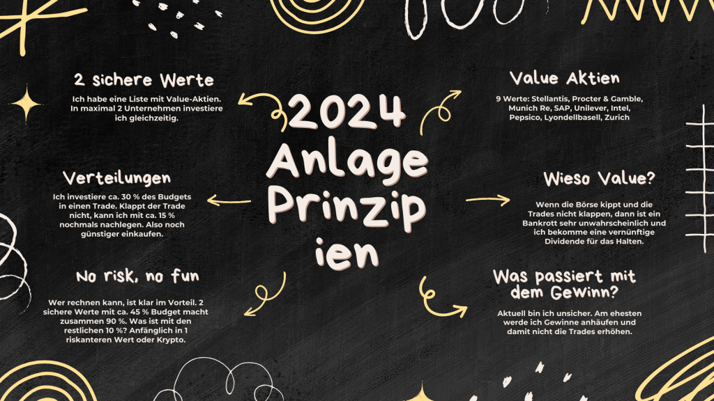 Daher habe ich ein neues Depot eröffnet und damit wird „gespielt“. Die damaligen Prinzipien habe ich leicht angepasst und hier sind sie: