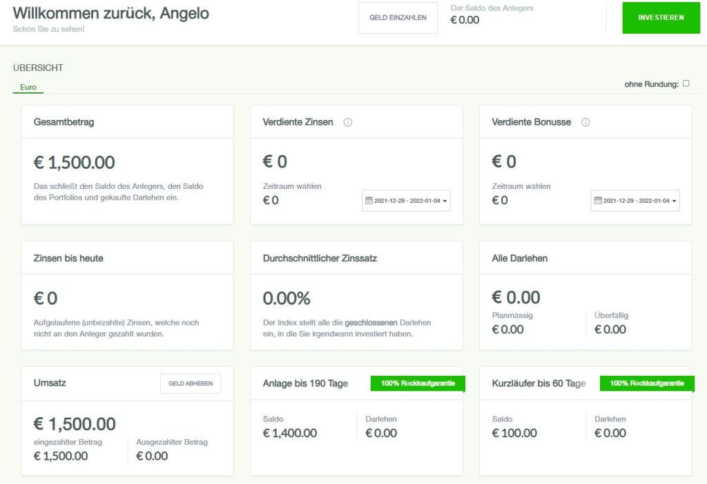 Kurzes Beispiel: Ich überweise monatlich 100 € auf eine Plattform, bei 6,5 % Zinsen (vor Steuer) sehe das dann so aus: